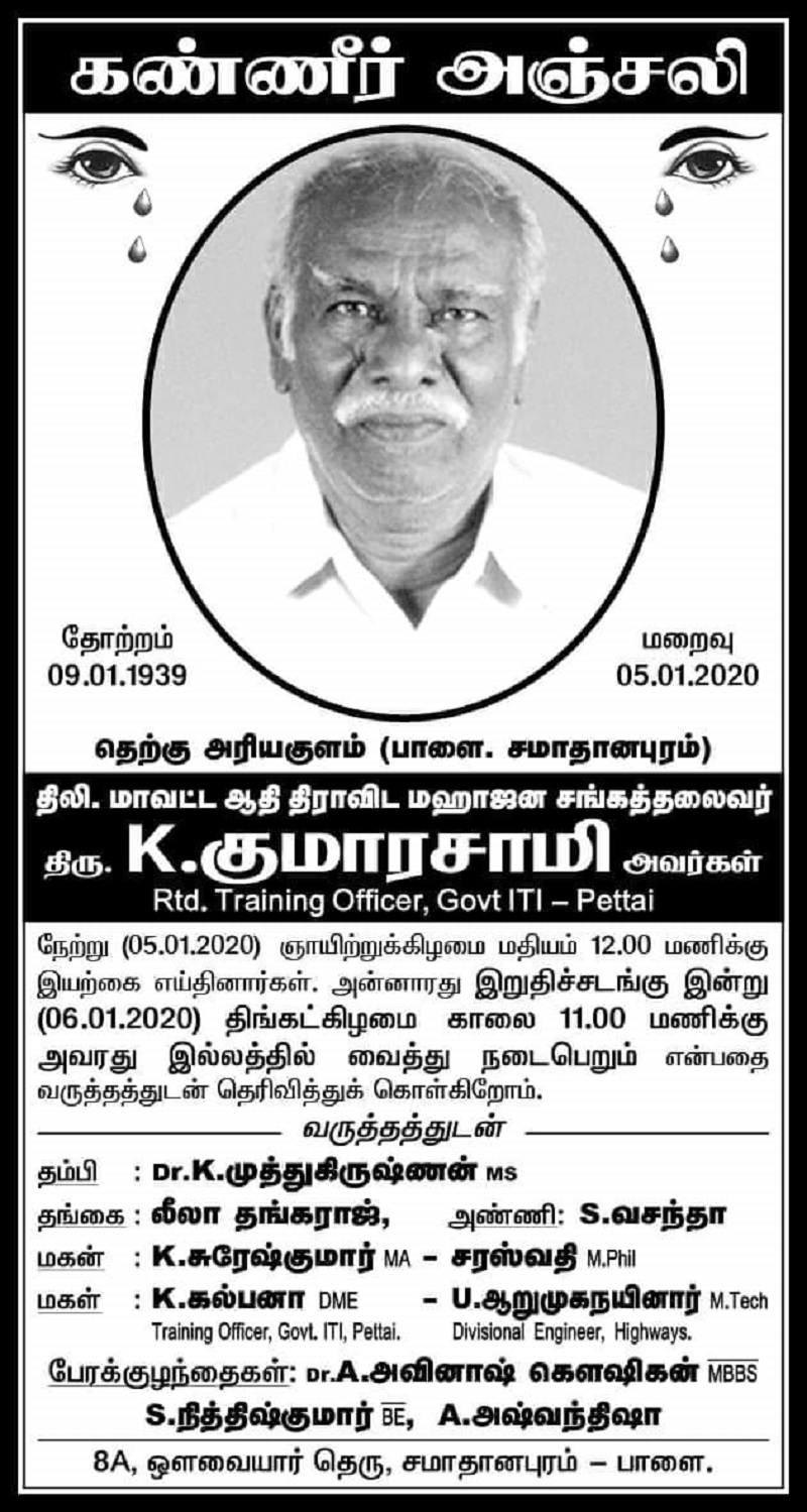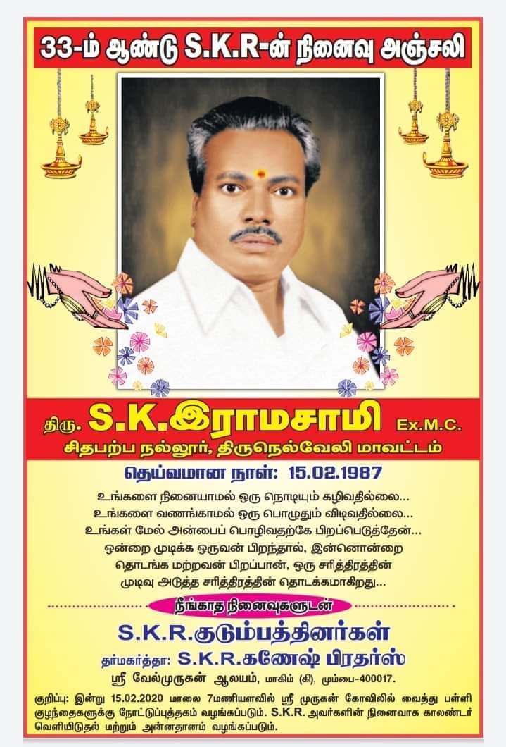 வந்திருந்தபோது, எஸ்.கே.ஆர். மரணமடைந்தார்.